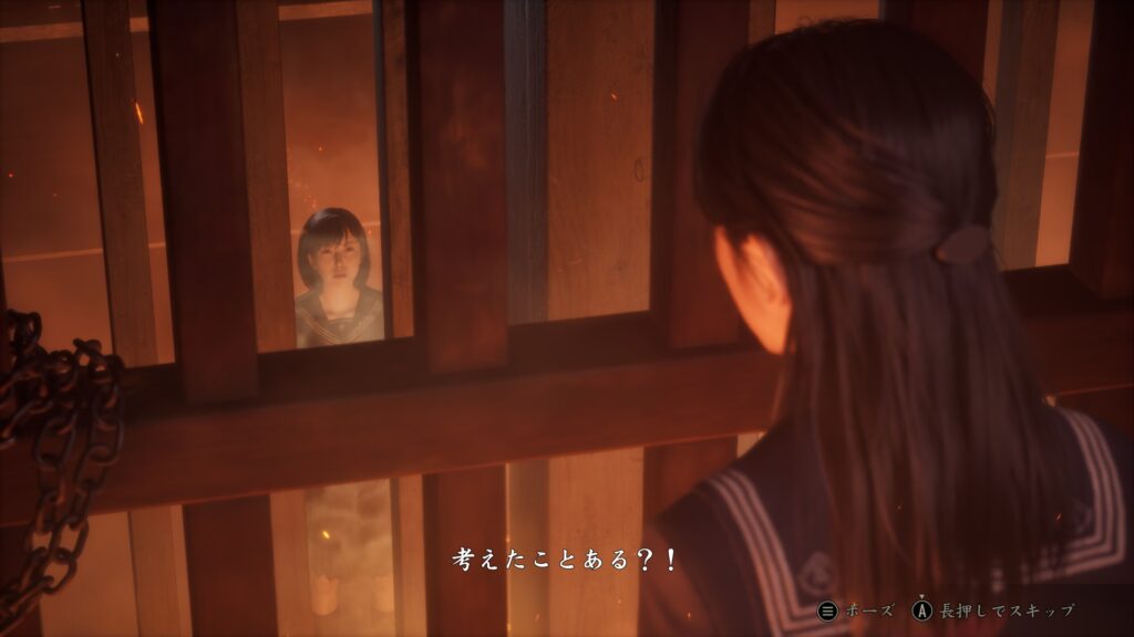 これ行き来しているのはどう見えているんだろうね?どっちが現実なのかもわからないのでなんとも言えないし、なんならどっちも現実じゃない可能性もありそうだし……。