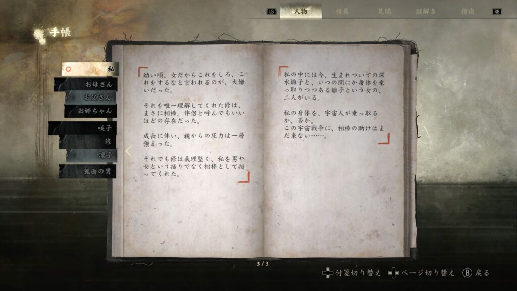 ちなみにこの章が終わったときに取った実績が「お別れ会」下の文章が怖い。