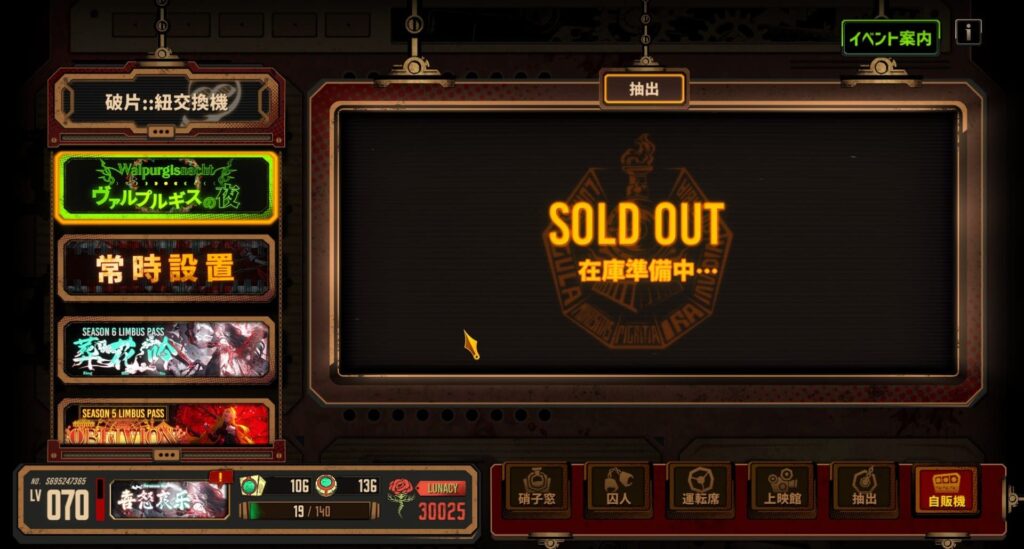 さーて今回ヴァルプルギスの夜のストーリーはないので、経験値採光を手動でひたすら回す予定。