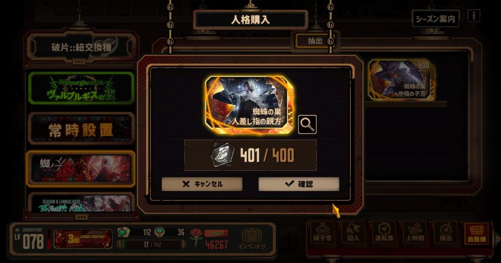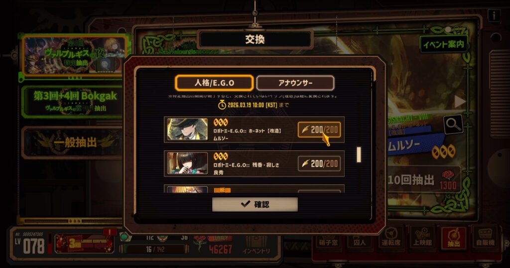 まあ私の運があれば新規人格2人と新規EGO確保いけるでしょ!