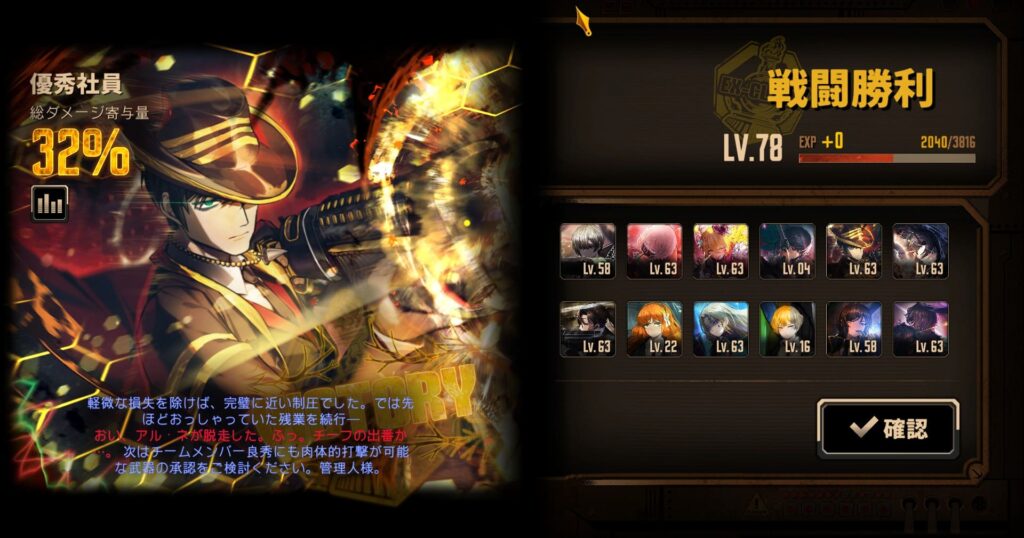 1番目に編成していたムルソーが捕まったのもあってそこそこ時間かかりました。