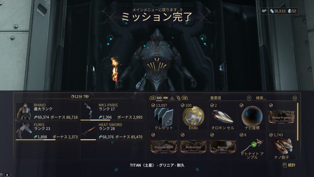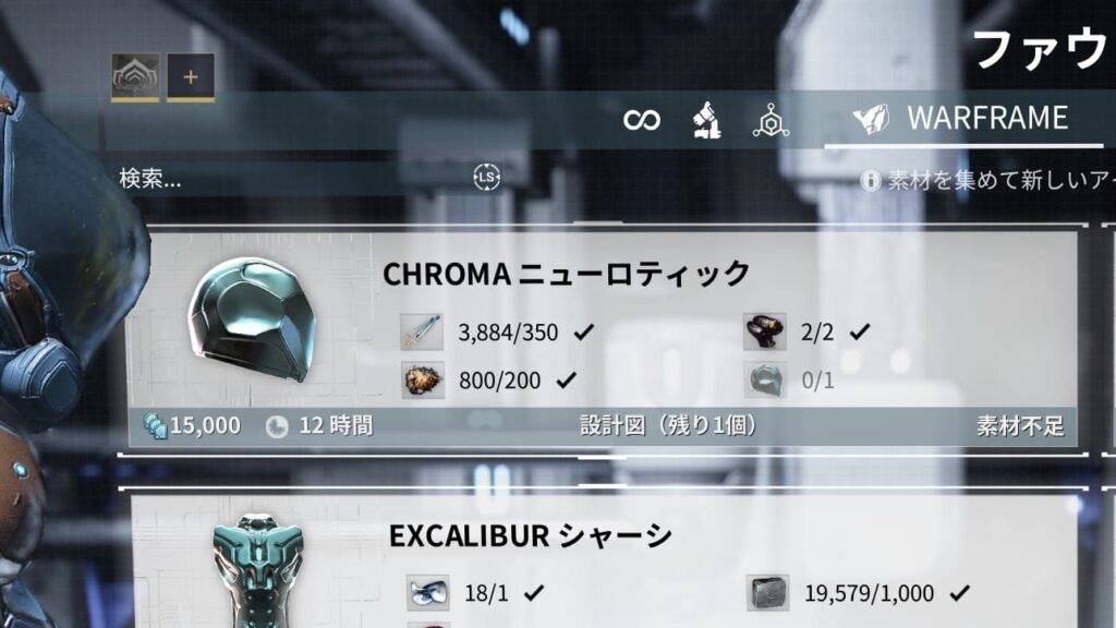 【Warframe】土星のTitan20分耐久がクリア出来ないのでCHROMAを目指したりFROSTを作ったりする