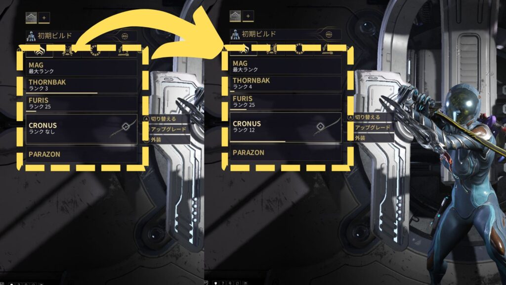 手持ちの毒、氷結、状態異常付与のMODのランクを上げて
